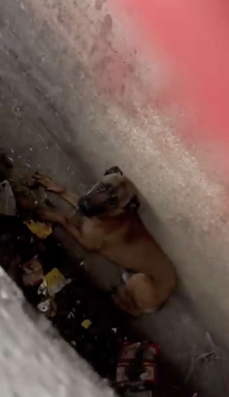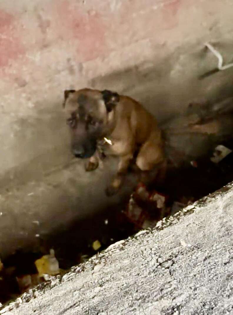 To Garcia’s surprise, a large dog was lying at the bottom of the sewer, completely hidden from the residential neighborhood above ground.