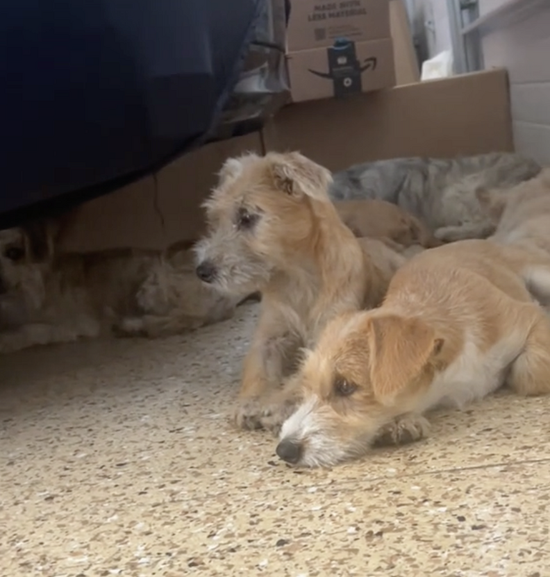 Once Castillo got home with all seven dogs, she let them out of the cage and gave them the care they urgently needed. They were all starving, parched and terrified.