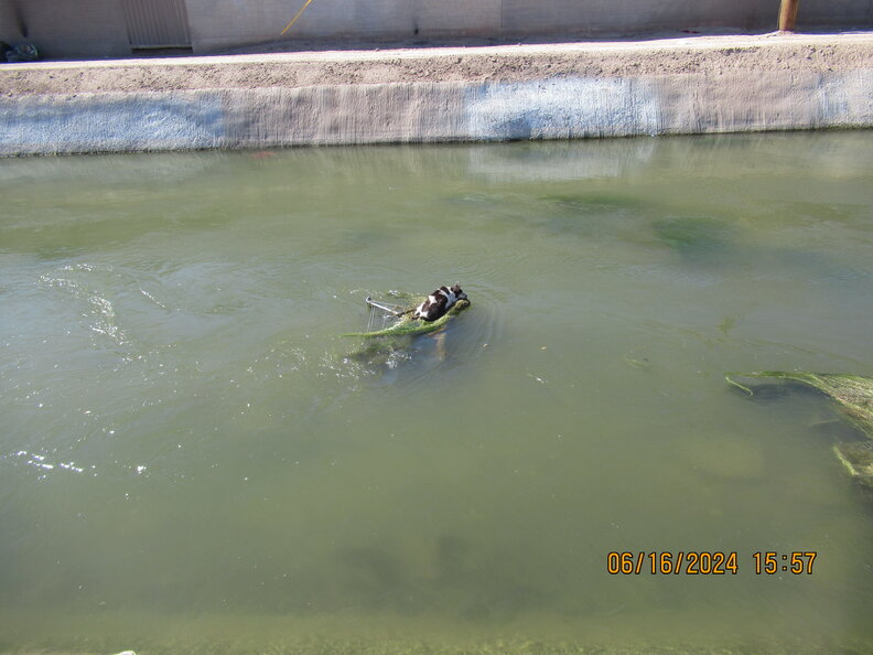 A senior Chihuahua mix, later named Dorthea, had somehow ended up on top of the shopping cart in the middle of the canal, and she was running out of time. The Good Samaritan immediately contacted Arizona Humane Society (AHS) for help. They reached out to the Phoenix Fire Department for additional assistance, and together the two teams sprang into action.