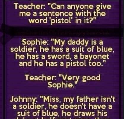 One quiet morning in class, the teacher decided to spark the students’ imagination with a simple but challenging question: Teacher: “Can anyone give me a sentence with the word ‘pistol’ in it?” The students began raising their hands, some hesitantly, some with shy smiles, waiting for their turn to shine. Sophie, a calm and diligent…