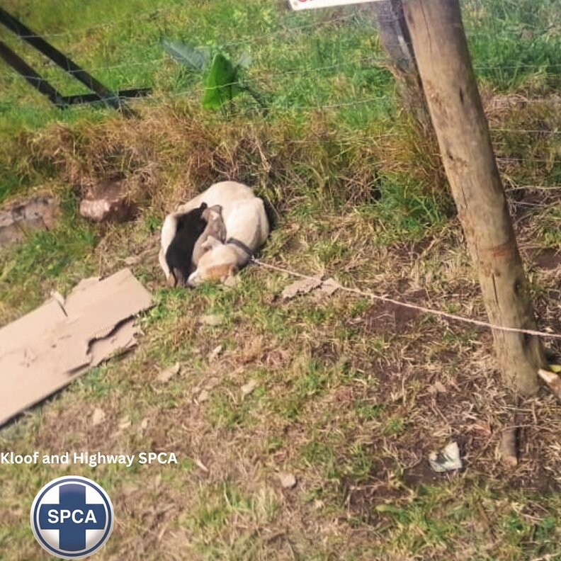 When the security team at Kloof and Highway SPCA noticed someone tied to a sign at the end of the shelter’s driveway, they immediately notified Inspector Kerrie Andrews, who went to investigate. She thought it might be a dog in need of help — but what she found was so much more heart-wrenching.