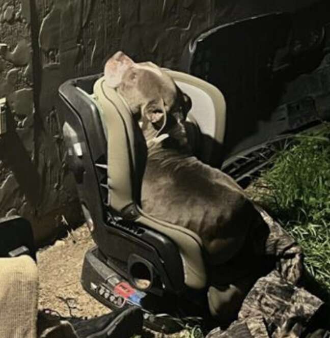 Stray Dog Curls Up In Child’s Car Seat To Keep Warm During Surprise Storm