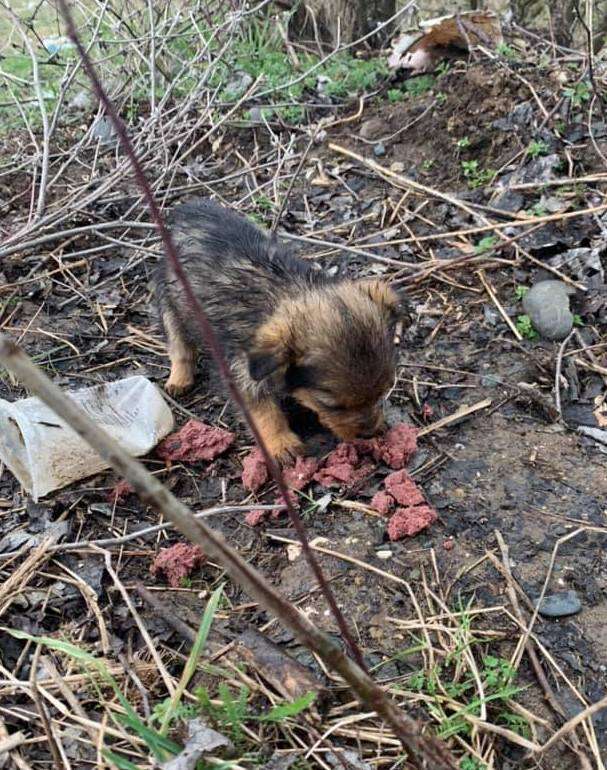 The little dog was living near a pile of trash, using an old boot to shield herself from the elements. The puppy was too young to be without a mom, but Marinkovic couldn’t find any other dogs nearby.