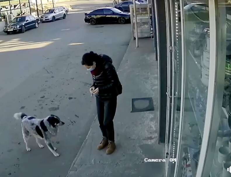 Camera Catches Nice Woman Stopping To Show Stray Dogs That They Matter, Too