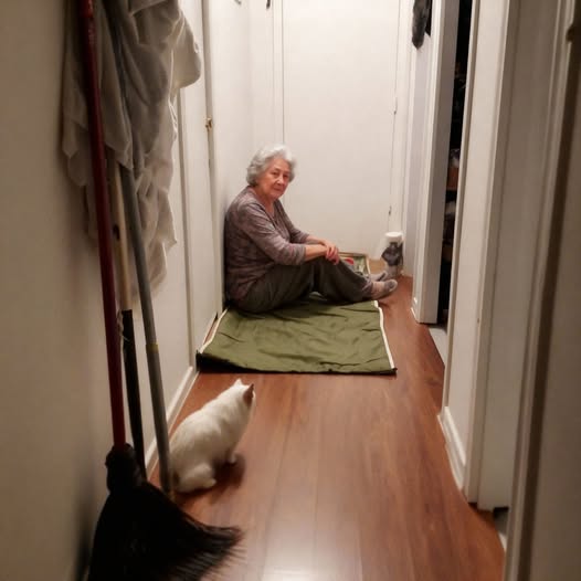 Then the camera shifted, and I saw her “bed”: a thin camping mat on the floor of a hallway, shoved next to a coat rack. No pillow. No privacy.