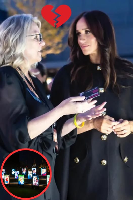 Markle and Harry attended a private memorial event as part of their campaign “No Child Should Die Because of Social Media.” Meghan wore a black cape coat with large gold buttons for the occasion, while Harry chose a blue shirt and black suit. The couple spoke with parents who lost their children to online harm and have since joined the parent network of their charity, The Archewell Foundation. Organizers also created a virtual version of the installation, providing information about each child, and some parents recorded personal voice messages to be heard.