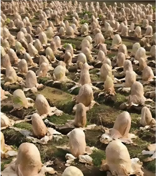 And the first real frost in February froze everything in ice. The result is a graveyard of cabbage frozen in ice.