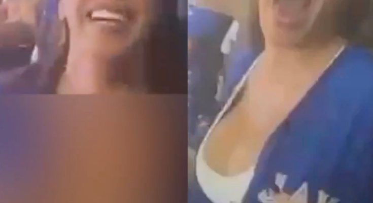 While the Blue Jays are the reason for the excitement in Toronto right now, a female fan is considered to be the real winner after flashing her breasts in the Rogers Centre stands, opening her team jersey up while pulling down the white top beneath to reveal a bouncy pair as she celebrated ecstatically.