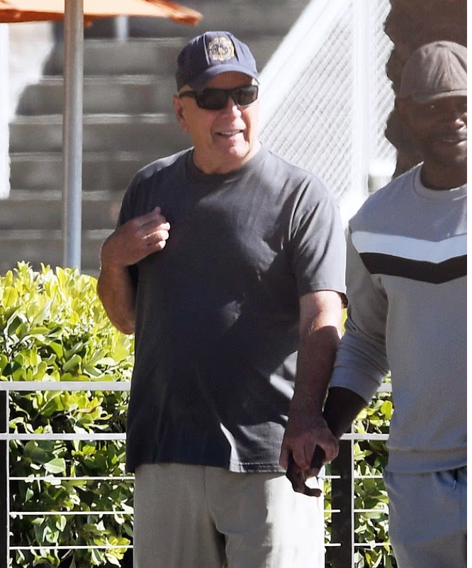 At 70 years old, Bruce Willis—once the invincible face of action cinema—was photographed this week taking a slow walk along the shoreline, his hand gently clasped in his assistant’s. The images, tender yet heartbreaking, show the actor gazing around with a vulnerable softness, almost childlike in his curiosity. For many fans, the sight of the Die Hard legend moving so cautiously felt like a painful reminder of the steep progression of his frontotemporal dementia, a journey his family has navigated with increasing openness—and increasing difficulty.