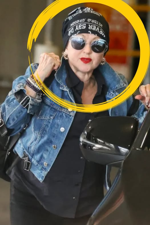 Pop legend Cyndi Lauper, famous for her iconic anthem “Girls Just Wanna Have Fun,” was recently spotted in public trying to stay under the radar. Sporting oversized sunglasses, a black “Goonies” beanie, and a dark-toned outfit, she attempted a low-key look—though her unmistakable energy and charisma still managed to shine through. Dressed in a classic denim jacket layered over a black tee and pants, she added her signature flair with bold red lipstick and a fresh-faced glow that reminded everyone she’s still every bit the star, even offstage.