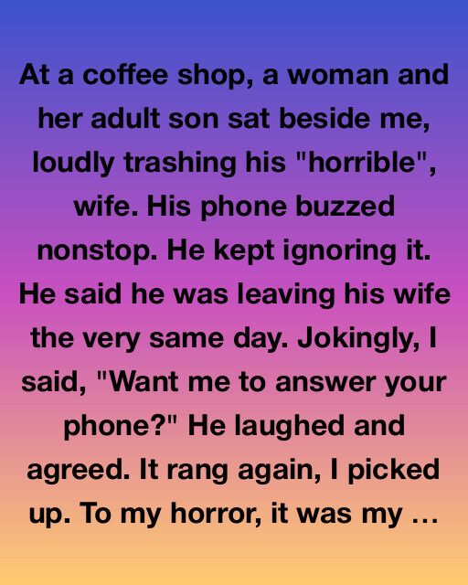 At a coffee shop, I overheard a man and his mother tearing into his “horrible” wife. His phone kept buzzing, and when I jokingly offered to answer, he agreed. To my shock, it was my sister on the other end.