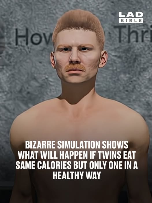 A simulation video has attempted to depict what would happen to twins if one ate a diet consisting of nothing but whole foods, and the other ate one consisting of nothing but junk food for a few weeks.