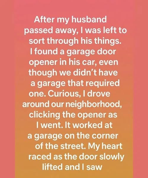 While sorting, I discovered a garage door opener in his car—even though we didn’t have a garage that required one. Intrigued, I drove around the neighborhood, pressing the opener as I went.