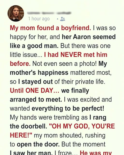 I was excited and wanted everything to be perfect! My hands were trembling as I rang the doorbell. “OH MY GOD, YOU’RE HERE!” my mom shouted, rushing to open the door. But the moment I saw her man, I froze… He was my