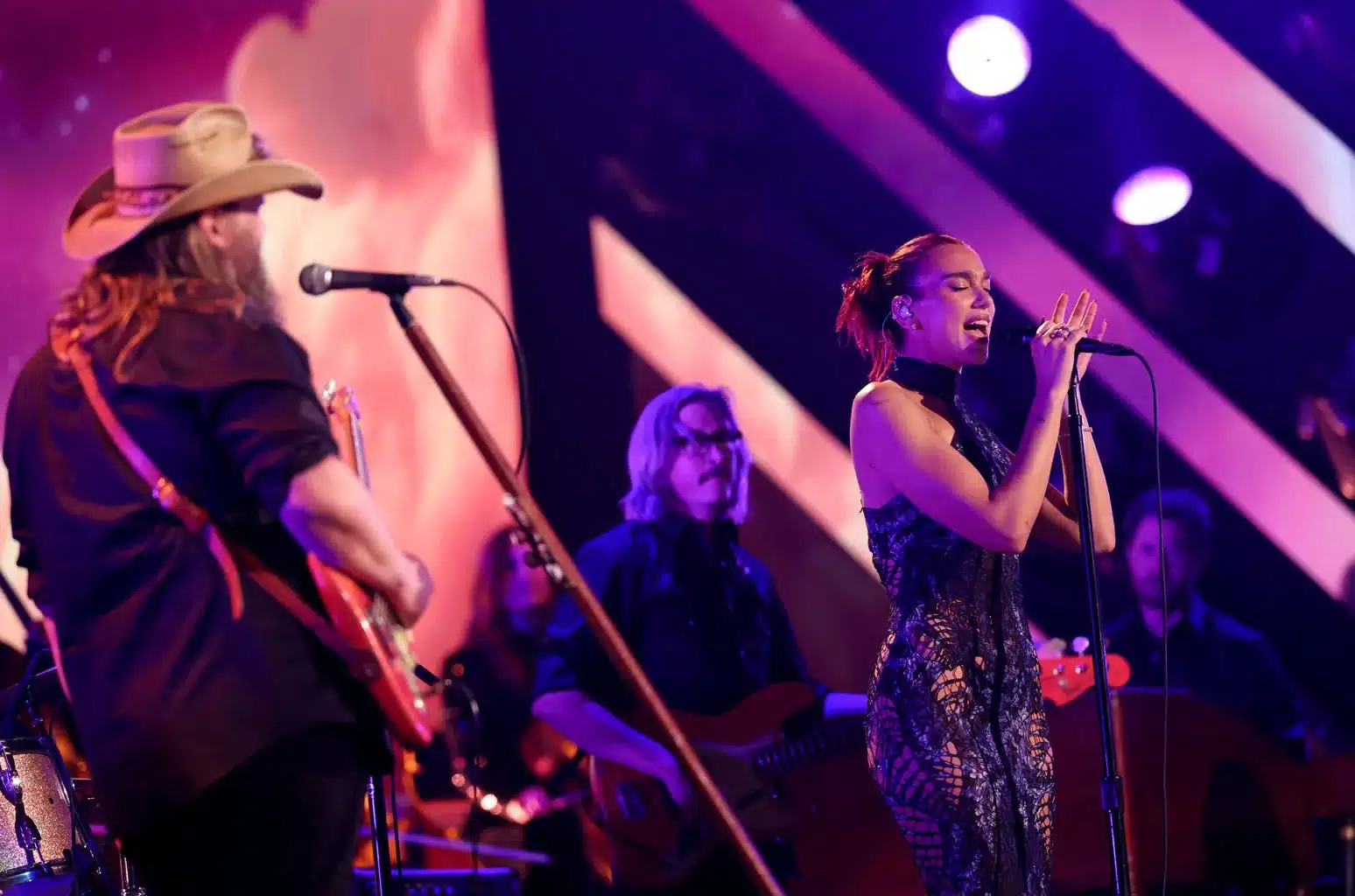 Stapleton opened the performance with his signature raspy baritone and a stripped-back guitar intro, creating an intimate, smoky atmosphere. Dua Lipa then joined in with her smooth, controlled vocals, and immediately, the chemistry was undeniable.
