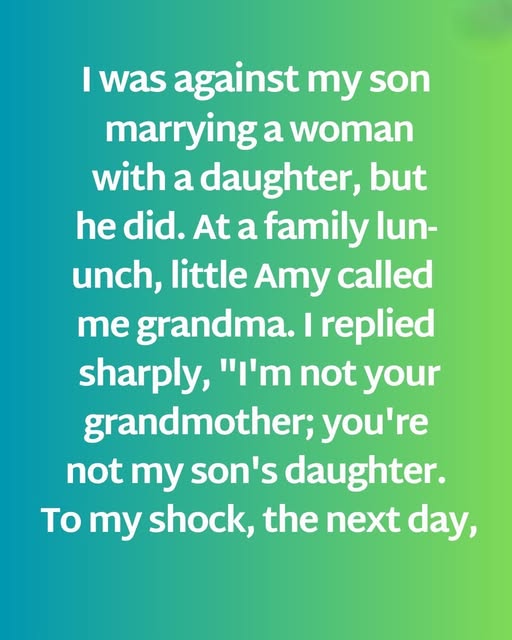 Amy didn’t take anyone’s place; she expanded what already existed. She became part of the family not because of blood, but because of the bond we chose to build — a bond I almost destroyed with one thoughtless moment. I learned quickly that being “Grandma” isn’t a title you earn through biology.