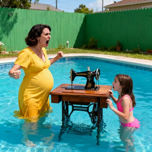 I’ll never forget the sound. That sharp thud followed by the splash that split the sunset in two. It was my daughter Lucía’s sewing machine—her most cherished possession—falling to the bottom of the pool like a doomed stone. And the worst part wasn’t the noise. The worst part was seeing my ex-husband, Andrés, with his arms crossed and a vacant stare, pretending he couldn’t do anything, while his wife, Carolina, stood firm, chin up, wearing that icy smile that always masked cruelty.