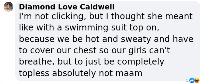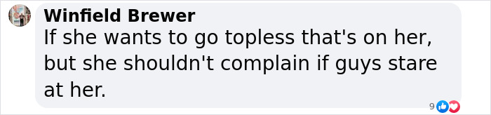 She challenged the idea that men can remove their shirts on hot days, but women like her aren’t allowed to do the same.