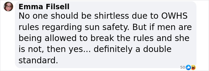 Shianne took to social media to vent about how unfair this situation felt to her. In her post, she explained how she had asked her boss if she could remove her shirt while working, just like her male colleagues do when it’s hot.