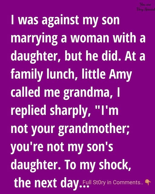 The next morning, my son knocked on my door. “Why would you say that to a child who just wants to love you?” he asked softly. I stammered, searching for an excuse, but found none. “I… I was holding on to the wrong things,” I whispered. He told me Amy had cried herself to sleep, believing she had done something wrong. My chest tightened with shame and guilt.