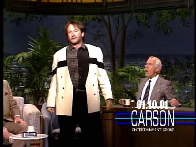 His energy hit the room like a live wire, sparking against Carson’s calm, classic cool. In seconds he was firing off characters, voices, and ideas with machine-gun speed, shifting from children’s toys to existential angst with that mischievous grin that said he was joyfully out of control. The crowd leaned forward, hanging on every shift, every derailment, every beautifully chaotic thought. No smartphones existed yet — but you could feel the moment carving itself into history.