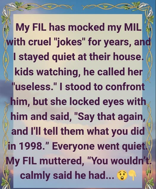 The family noticed a subtle transformation: she stood taller, spoke more freely, and carried herself with a confidence that didn’t ask permission. No one knew exactly what happened in 1998, but they understood that the burden had been hers to carry and that she had finally set it down. Her story wasn’t about revenge, but restoration. When she stopped accepting cruelty as normal, she changed the dynamic of their home. What he had once controlled with fear dissolved in the presence of boundaries. And for the first time in many years, she wasn’t invisible—she was heard.