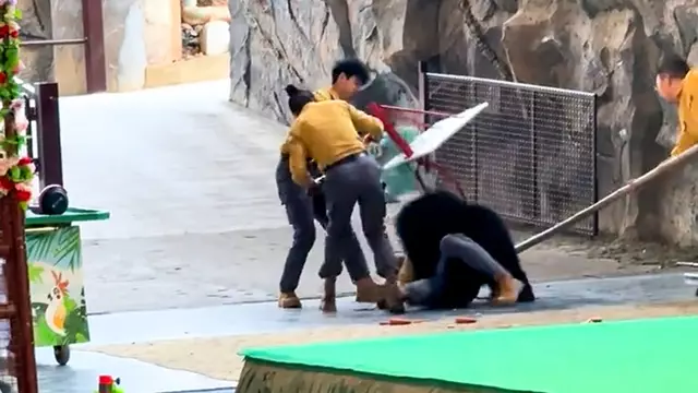 The shocking incident, which took place at Hangzhou Wildlife Park in the province of Zhejiang on 6 December, saw the trainers preparing for a show when one of the bears suddenly lunged forward and shoved a trainer to the ground.