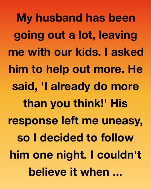 My husband has been going out a lot, leaving me with our kids. I asked him to help out more. He said, “I already do more than you think!” His response left me uneasy, so I decided to follow him one night. I couldn’t believe it when he parked outside a run-down building on the edge of town and walked inside like he belonged there.