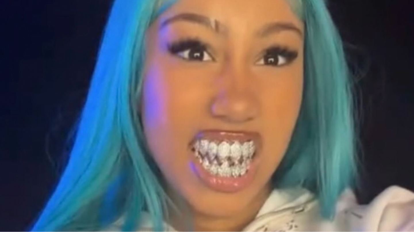 Now, North appears to have debuted another look, this time featuring a piercing on the bridge of her nose. She also showed blackened teeth, which are assumed to be another set of grills, along with blue bangs paired with her brightly colored hair.