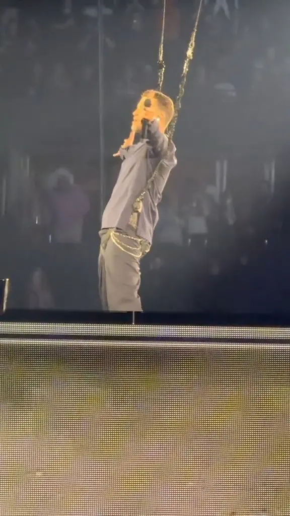 A concertgoer shared a TikTok clip capturing the moment, showing a very visible bulge near Timberlake’s groin. In the video, the singer can be seen repeatedly tugging his shirt downward in what looked like a not-so-subtle attempt to cover the situation.