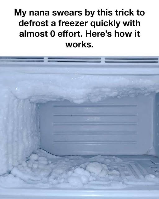 While Nana’s trick is safe and straightforward, it’s important to take a few precautions. Ensure the freezer is unplugged before starting to avoid any electrical hazards. Use a plastic spatula instead of metal to prevent damage to the freezer’s interior. Be cautious when handling hot water to avoid burns.