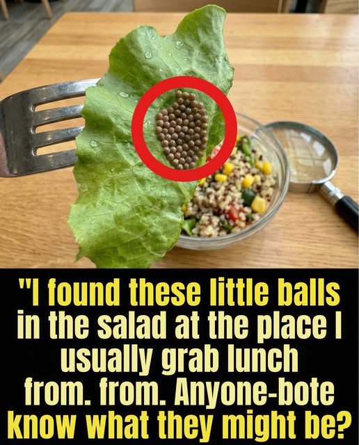 Then she leaned in for a closer look, and her stomach lurched. These were not grains at all. They were perfectly round, tightly grouped, and arranged with unsettling precision. Her appetite disappeared instantly. What she had assumed was a healthy superfood was, in reality, something far more disturbing: a cluster of insect eggs attached to the underside of a lettuce leaf.