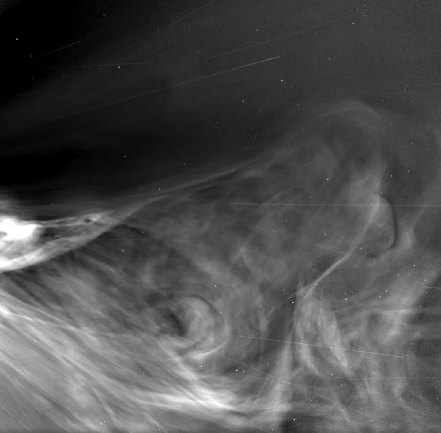 One way to picture the footage is to imagine the movement of a puff of smoke or something squirting through water. That’s kind of how the solar material swirls and flows through space.