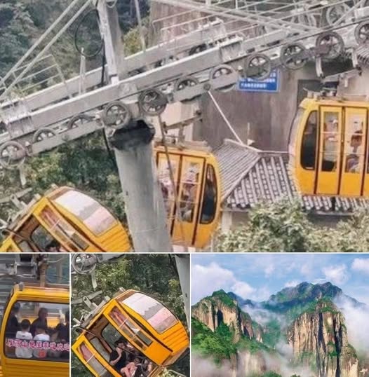 While the woman was visiting the Yandangshan Scenic Area, located south of Shanghai in China, on Tuesday, she fell out of the cable car while it was tilted at a steep angle.