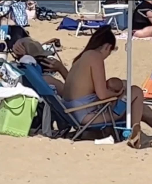 The video showed Lomax sitting at the beach under an umbrella, breastfeeding her infant. She had no idea she was secretly being recorded.