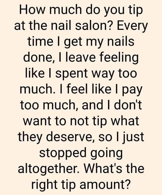 A common tipping range is 15–20% of the service cost. For example, a $30 manicure would typically get a $4–$6 tip, while a $70 full set with nail art might earn $10–$14.