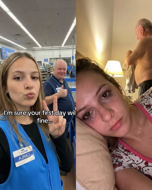 According to accounts accompanying the video, the initial image presents a seemingly lighthearted moment: the employee and her manager laughing together, suggesting a friendly or informal relationship beyond strictly professional interactions. However, the narrative takes a sharp turn in what is described as a “before and after” contrast. In the second image, the employee appears visibly distressed, lying in bed and crying, while the manager is shown nearby, still dressed, creating a stark and unsettling juxtaposition that has fueled speculation and concern among viewers.