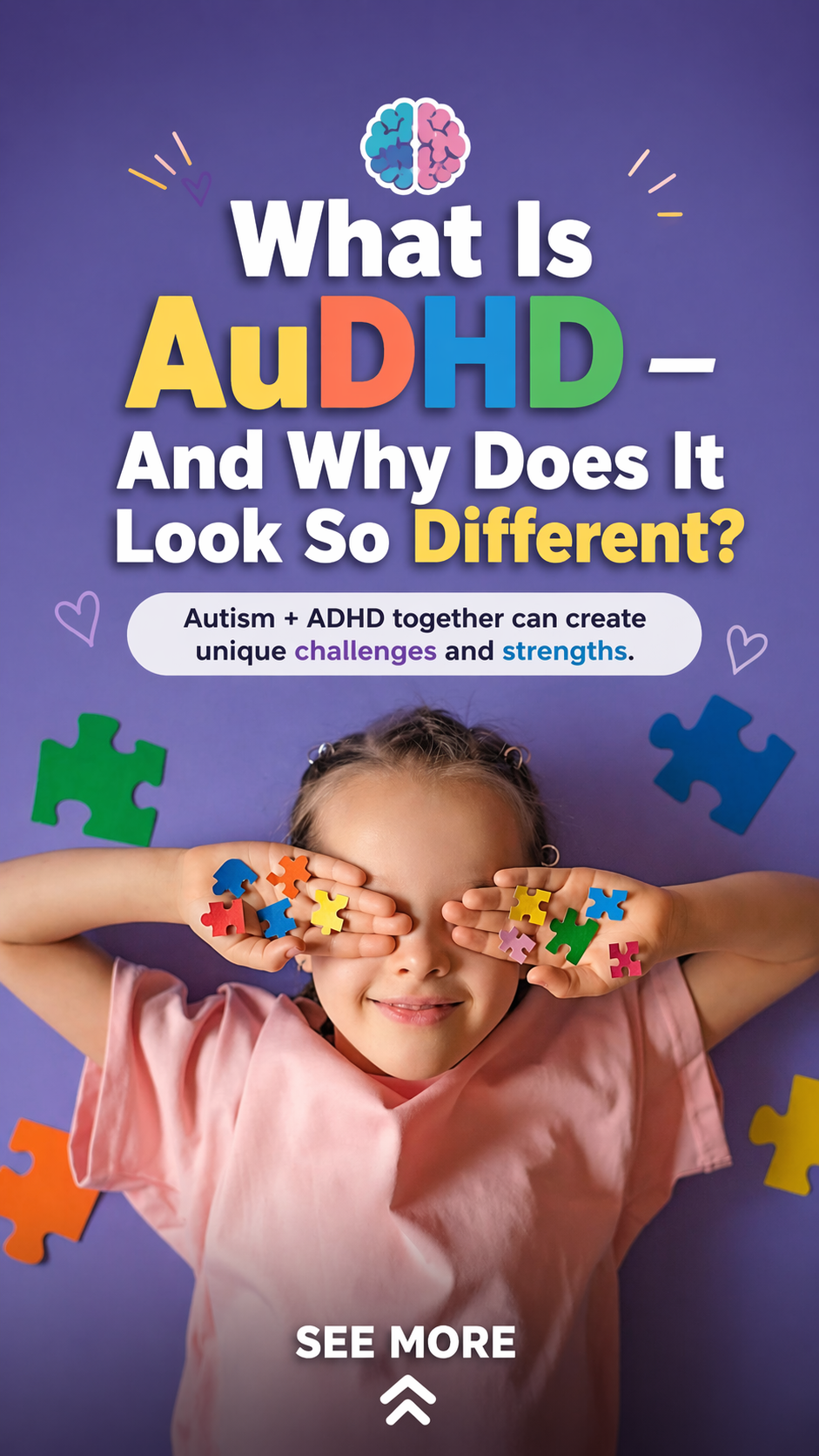 Strengths in AuDHD can be related to either condition. This can include common autistic strengths such as being highly focused, having meticulous attention to detail and subject matter expertise.