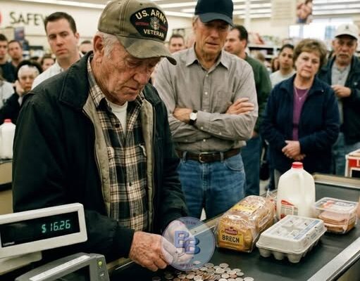 Clint Eastwood was buying coffee when elderly veteran counted coins for bread. Came up short. Cashier said, “Put something back.” What Clint did next and what the veteran said when he realized who paid left entire store silent. It was a Tuesday morning in September 2018, and Clint Eastwood stopped at a Safeway grocery store…