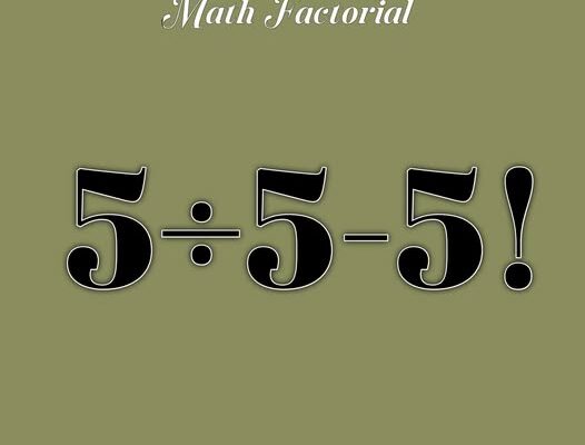 Now the solution. The expression is 5 ÷ 5 − 5! First handle the factorial. 5! = 120 Then the division: 5 ÷ 5 = 1 Now put it together: 1 − 120 = −119 Final answer: −119