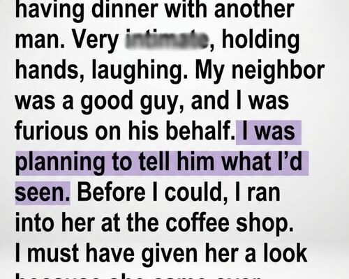 One brief glance across a restaurant convinced me I understood someone else’s life. The evening had been unremarkable—gentle music, warm lights, the soft rhythm of plates—until I noticed Sarah, my neighbor’s wife, seated in a corner booth with another man. They leaned in close, laughing easily, their relaxed expressions suggesting familiarity and trust. In seconds,…