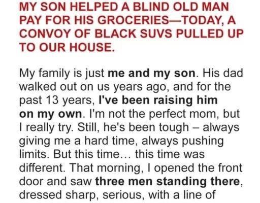SHARE My family has always been small, just me and my son, learning our way through life together. He’s grown up watching me work hard, and though he sometimes challenges me, I know he has a good heart. One afternoon, he quietly helped an elderly man at the grocery store who couldn’t see the total…
